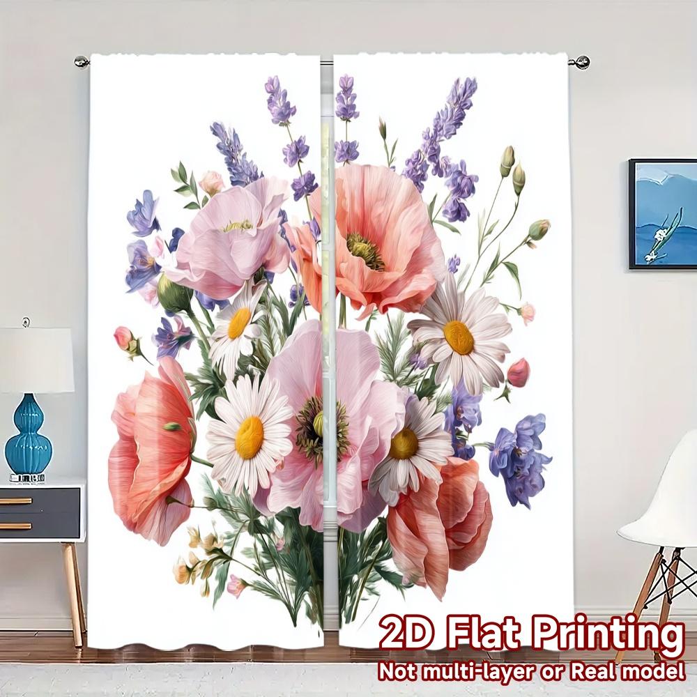 2pcs 2D FLAT PRINTING Curtains (Without Rod) Blooming Harmony Chic Curtain Cloth Versatile 100% Polyester Curtains All Seasons