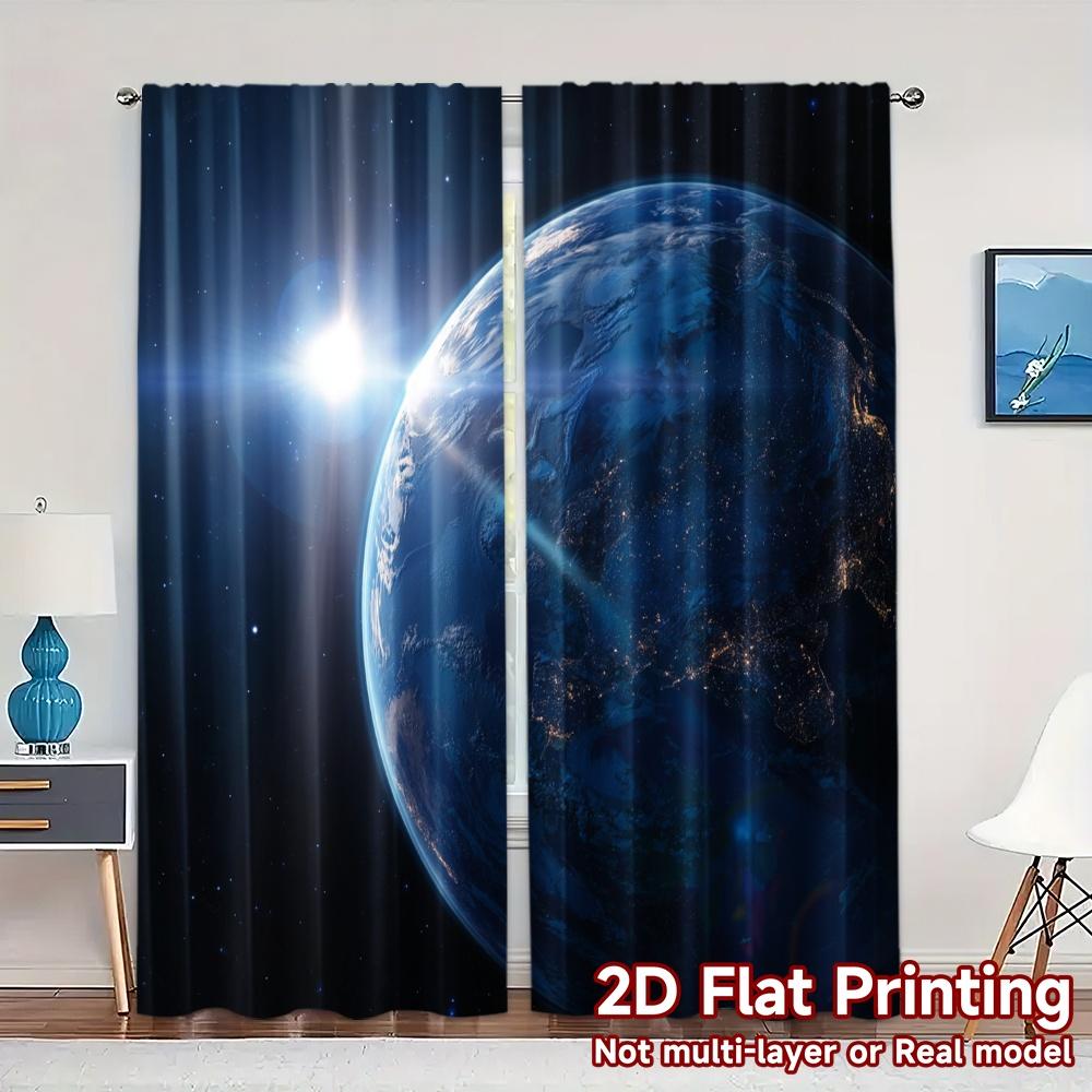 2pcs 2D FLAT PRINTING Curtains (Without Rod) Earthrise Popular Popular Curtain 100% Polyester Curtains Decorations Inside