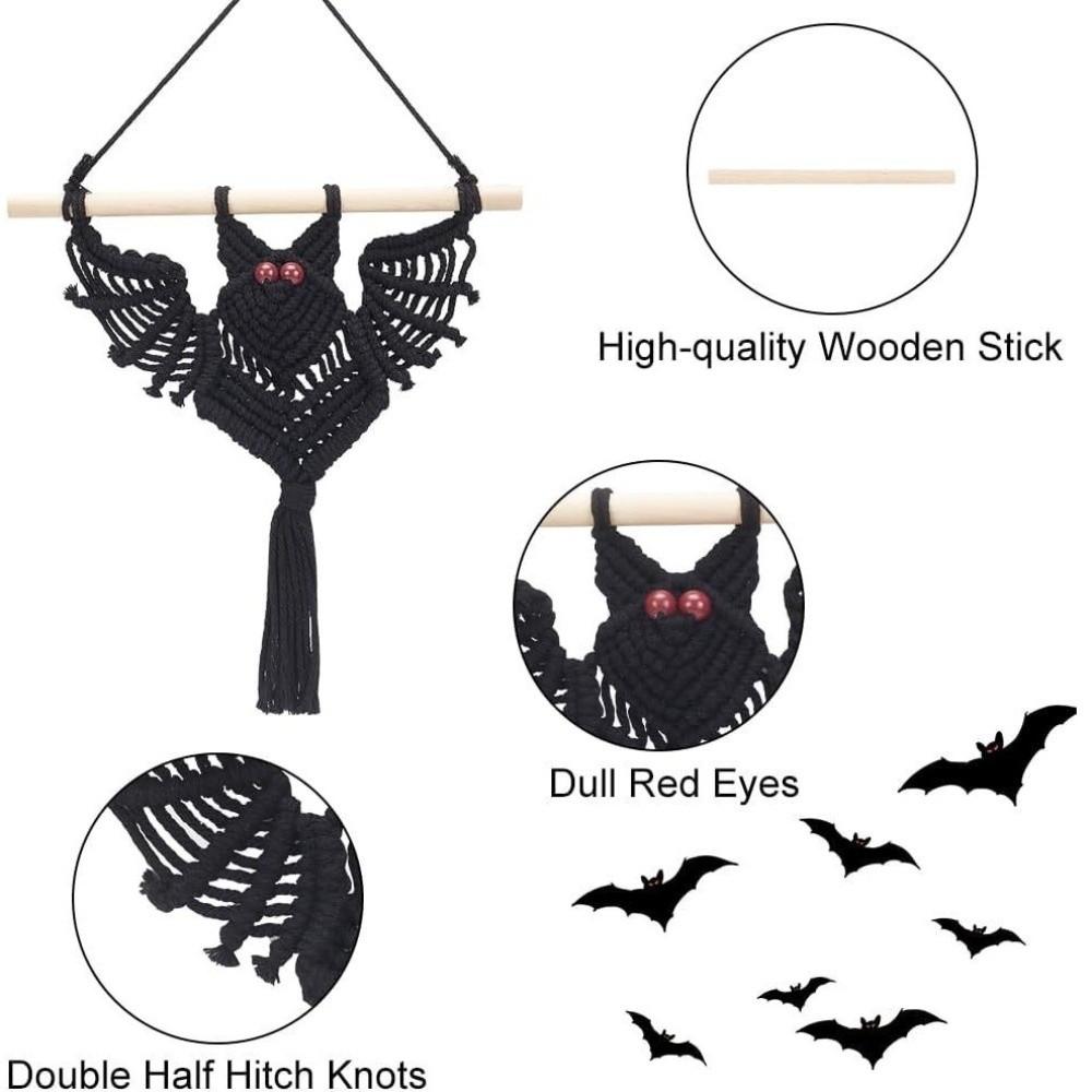 Festive Handmade Bat Tapestry Woven Bat Pattern Handwoven Decor Halloween Wall Hanging Halloween Party