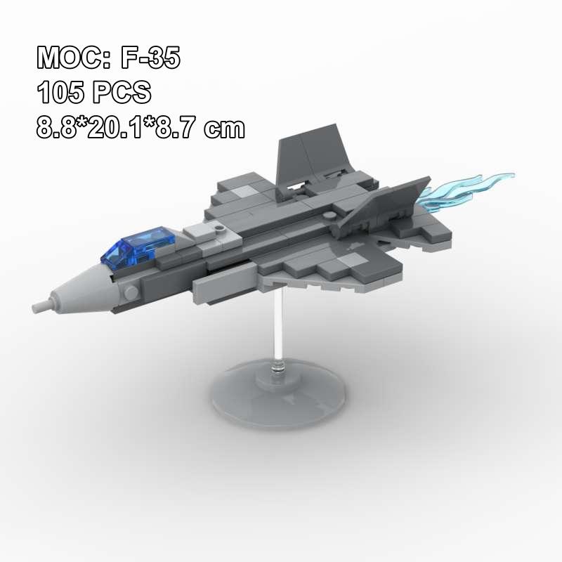 MOC Aircraft Assembly Building Block Model F35 American Fifth-Generation Fighter Jet with Base and Flames Children's Toy Gift