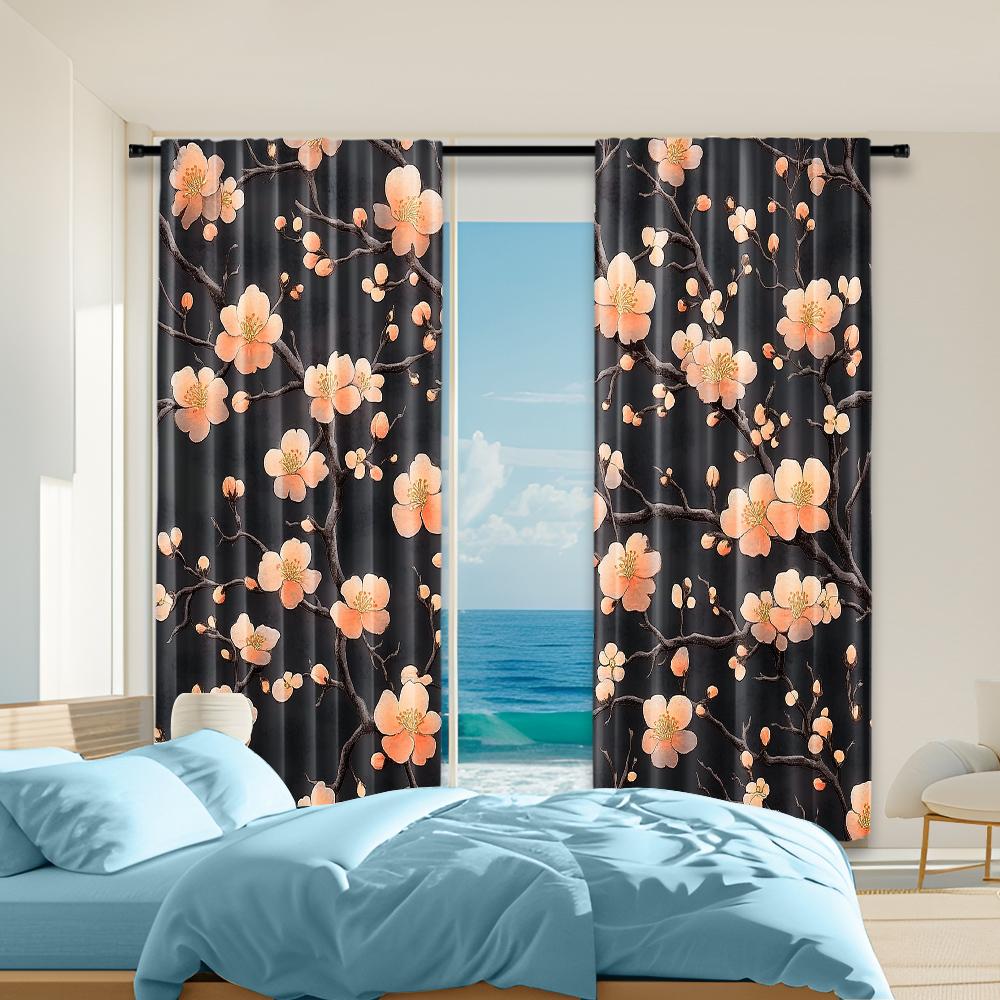 2 pcs versatile polyester transparent curtains for home decoration Retro Dead Branches Floral for use in bedrooms and living