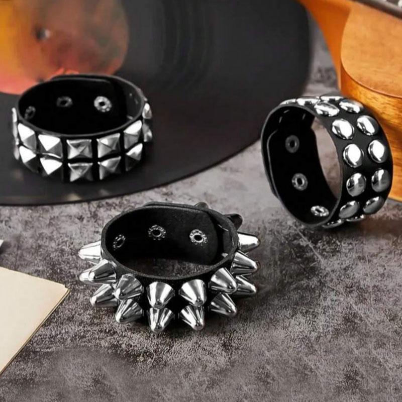 Punk Spike Stud Leather Bracelet Hip Hop Rock Wide Cuff Bangle Steampunk Hand Classic Rivet Wristband Hand New
