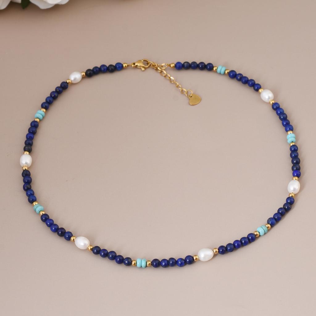 New Arrival Trendy 100% Natural Freshwater Pearl & Lazurite Stone 14K Gold Filled Female Beads Chain Necklace For Women