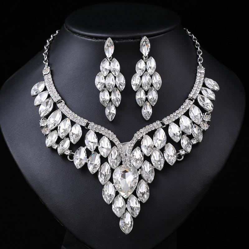 2025 New Exaggerated Vintage Necklace Earring Set Women's Crystal Set Suitable For Bridal Banquet Dress Accessories Party Gifts