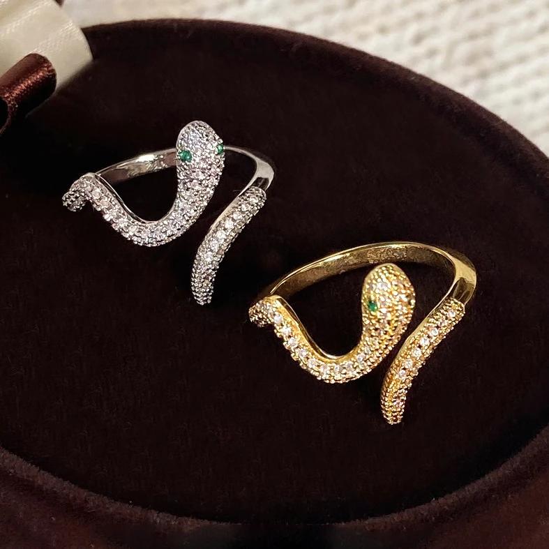 PONYKISS Sterling Silver 18K Gold Zircon Twisted Snake Rings for Women Cute Fine Minimalist Opening Accessories