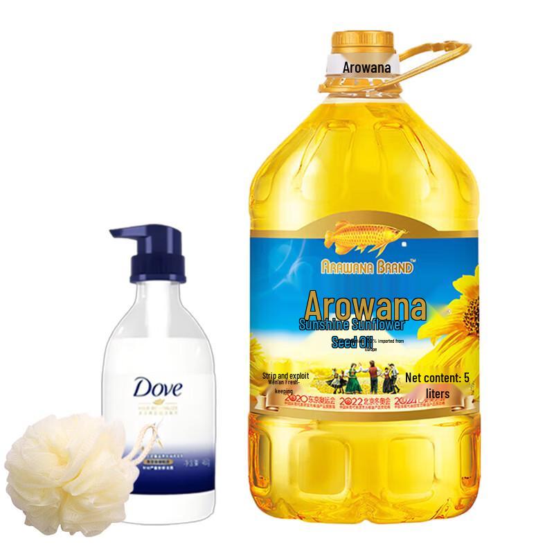 Experience comprehensive hair care with the Dove Intensive Nourishing Hydrating Shampoo. Formulated to provide anti-dandruff, soothing, and cleaning benefits, it is suitable for all hair types. This special bundle includes a 460g bottle of shampoo, a complimentary bath ball for an enhanced shower experience, and a 5L bottle of Arowana Sunshine Sunflower Oil, making it a perfect value pack for your household needs.