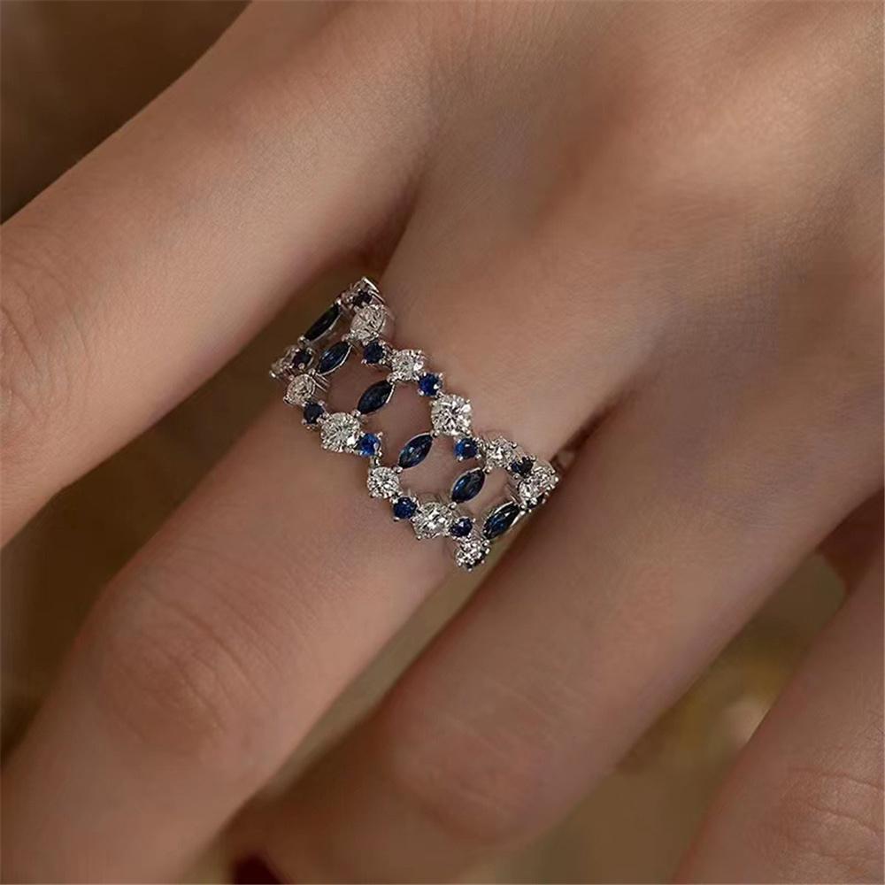Cute Female White Blue Zircon Stone Silver Color Wedding Promise Engagement Rings For Women