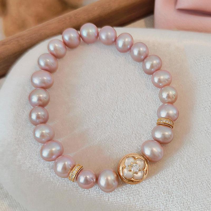 Sweet style pink Fritillaria flower bracelets for women purple pearl bracelet exquisite gentle style wedding gift