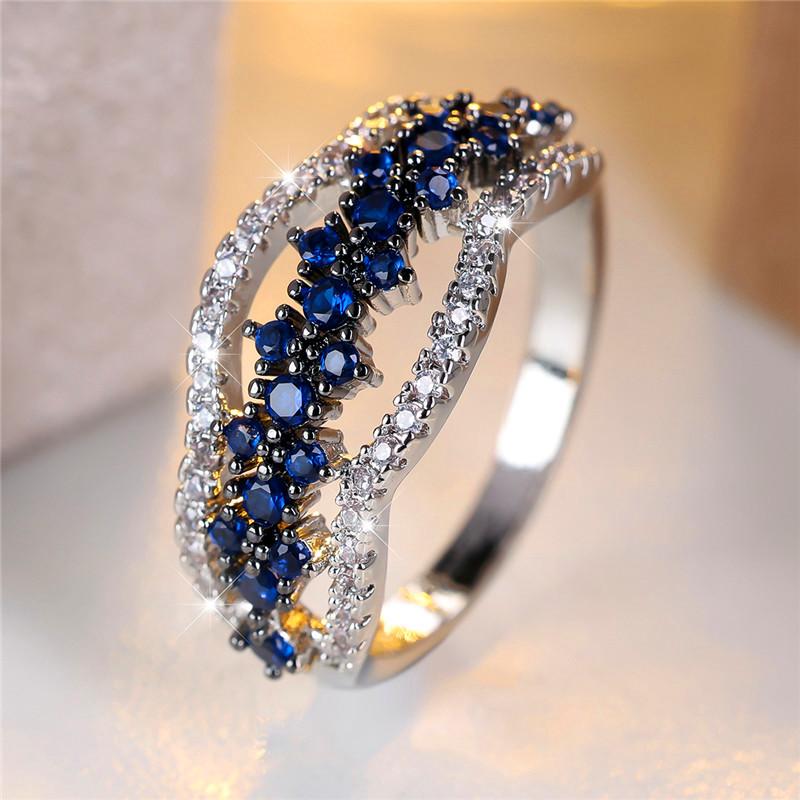 Cute Female Small Blue Round Zircon Stone Ring Charm Silver Color Wedding For Women