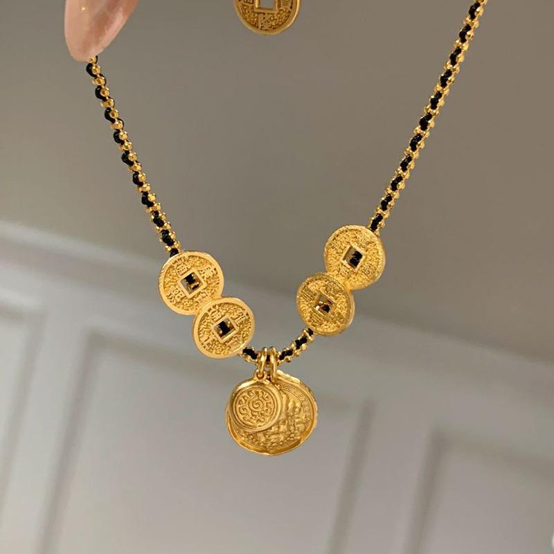 Shining Diamond Black Gold Braided Rope bangles Classic Yellow God of Wealth Five Emperors Coin Bracelet Vintage Gift