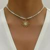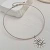 Smooth Vintage Golden Metal Thin Choker Retro Necklace for Women Trendy Sun Pendant Necklace Torques Summer Neck Chain