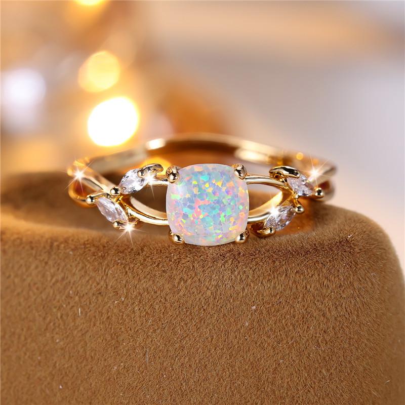 Fashion Female White Fire Opal Stone Engagement Ring Trendy Gold Color Bride Wedding Gift For Women