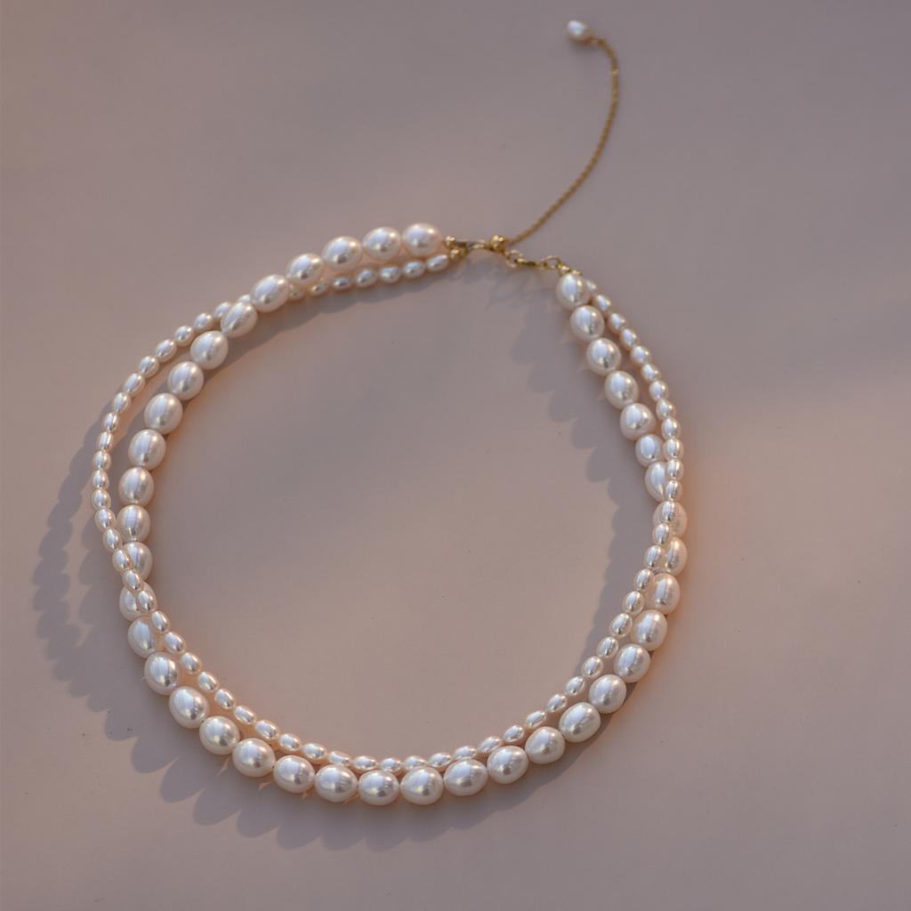 100% Natural Bright Freshwater Pearl Trendy Double Layered Chains Choker Necklace For Women Mother's Day Gifts