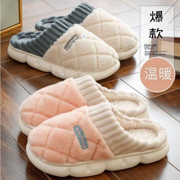 Cotton slippers women's home indoor home thick bottom plush warm couple cotton slippers men's