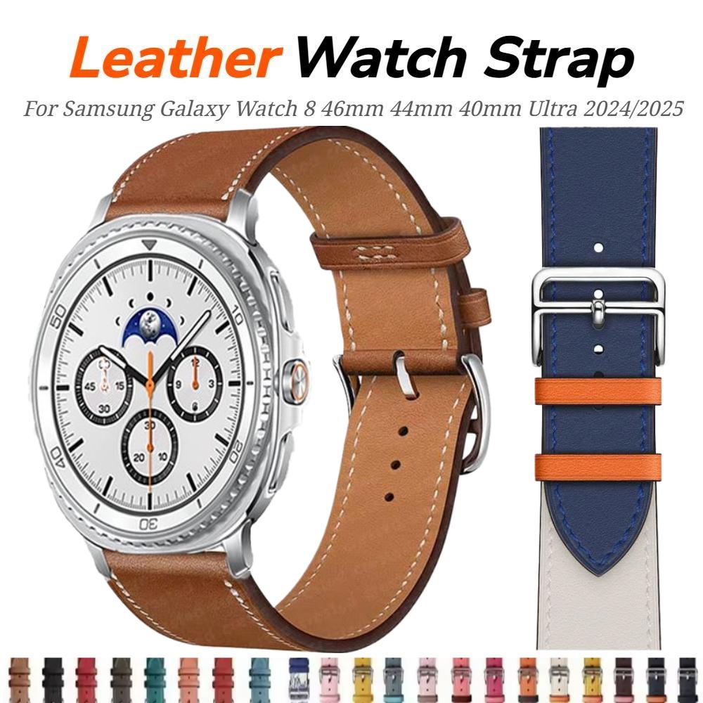Leather Watch Strap For Samsung Galaxy Watch 8 Classic 46mm 44mm 40mm Strap Galaxy Ultra 2024/2025 Wrist Belt Correa Bracelet Galaxy Watch Accessories