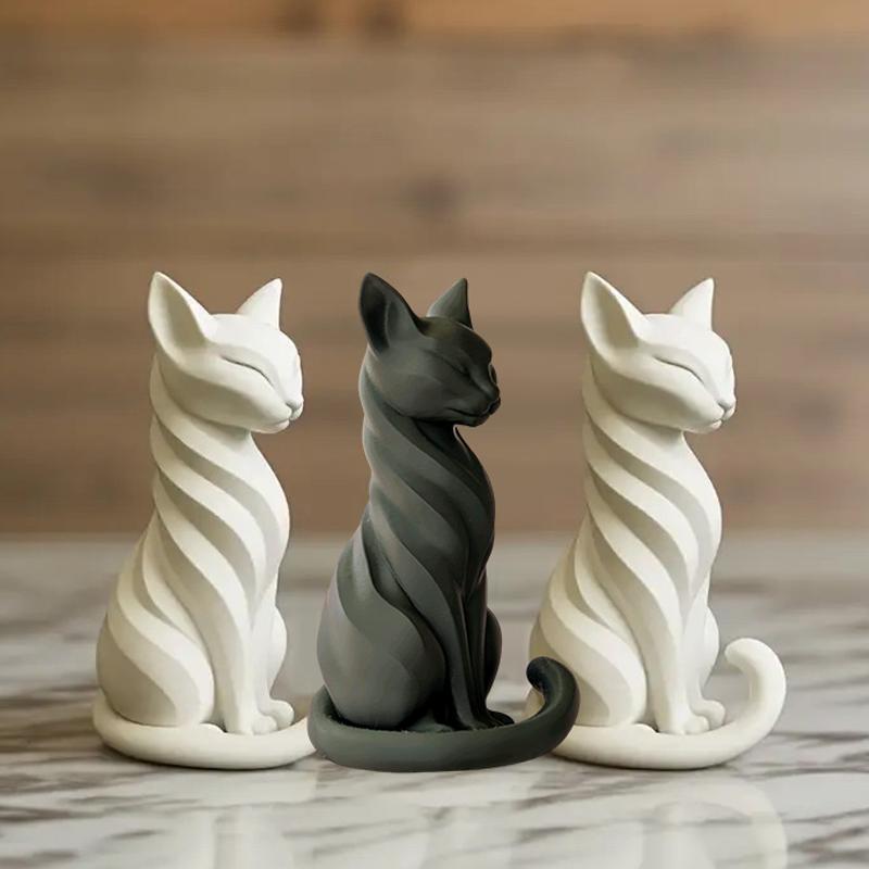 1 Pc Elegant Cat Sculpture With Stripes Cat Figurine Indoor/Outdoor Home Decor Charming Cat Statue Desks Bookshelves Ornament