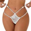 Women's Glitter Thong Sexy Floral Lace Sheer Strappy Underwear Rhinestone Strap G-String Stretch Panties