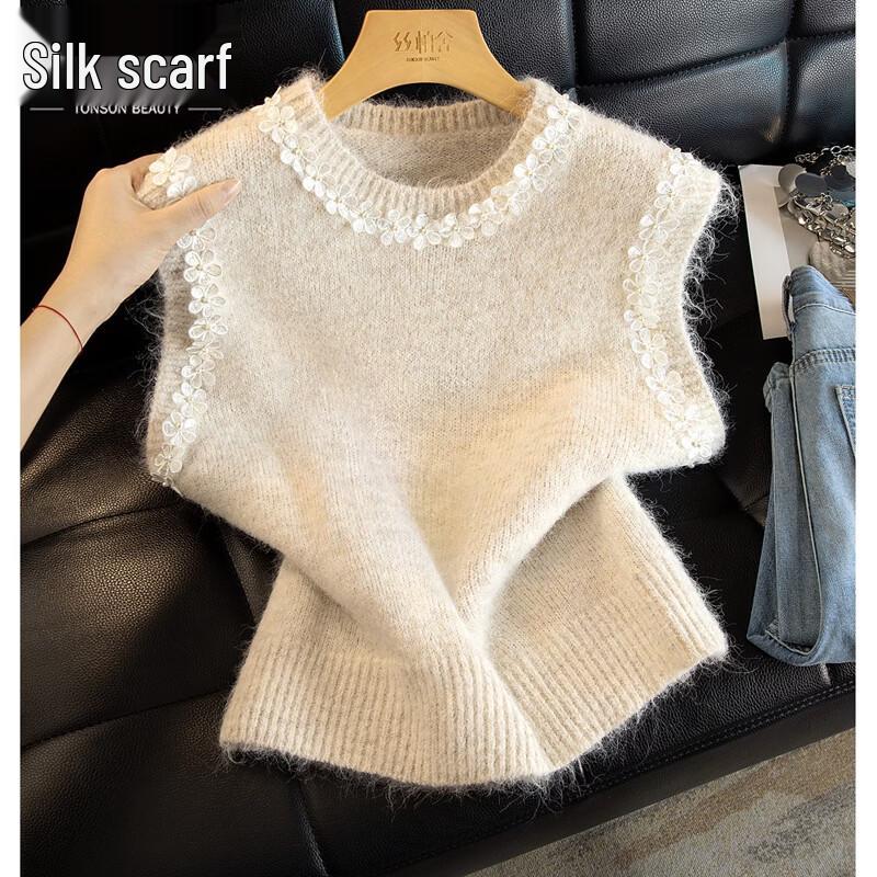 Si Bo She Women's Round Neck Beaded Layered Vest