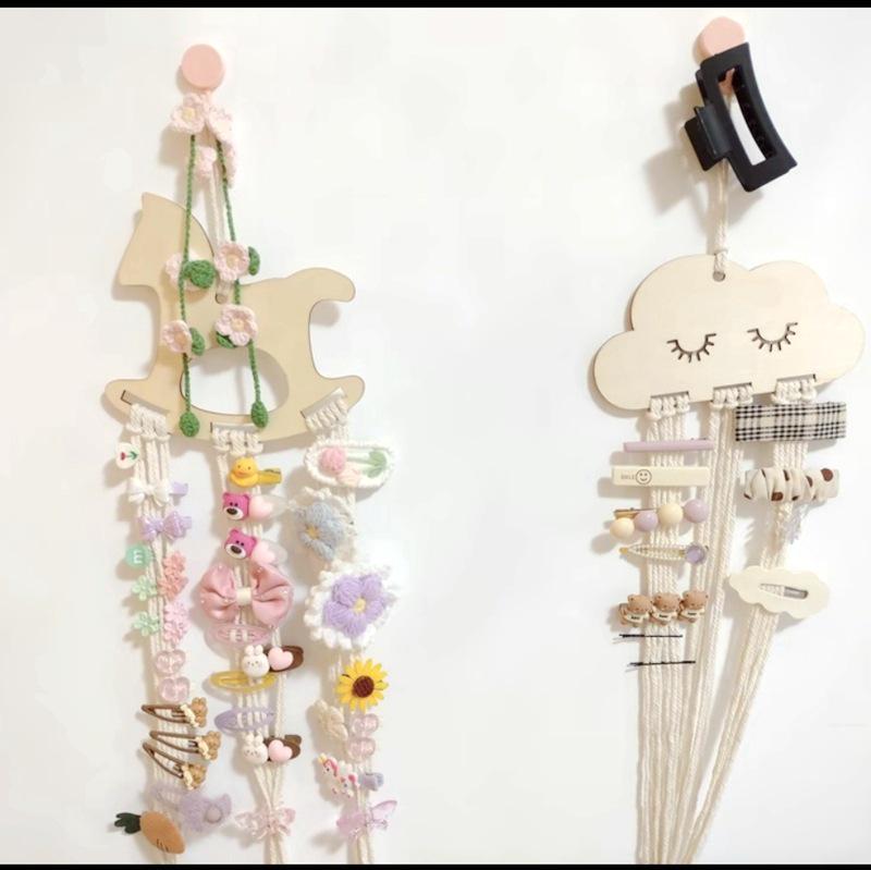 Nordik Tarz Kendin Yap Bulut Ahşap Çocuk Saç Klipsi ve Saç Bandı Düzenleyici Duvar Dekorasyonu