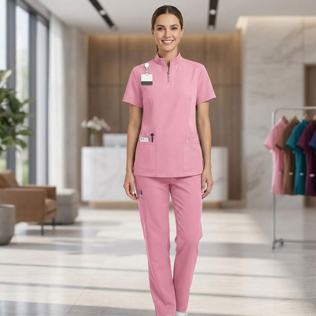 Nurse Stand-up Collar Zipper Work Uniform, Surgical Gown, Hand Gown Operating Room Straight Pants, Women Attire