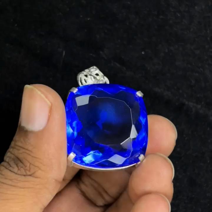 Laboratuvarda Üretilmiş 91.9 Karat SERTİFİKALI Safir 925 Ayar Gümüş Mavi Değerli Taşlar Kolye Ucu