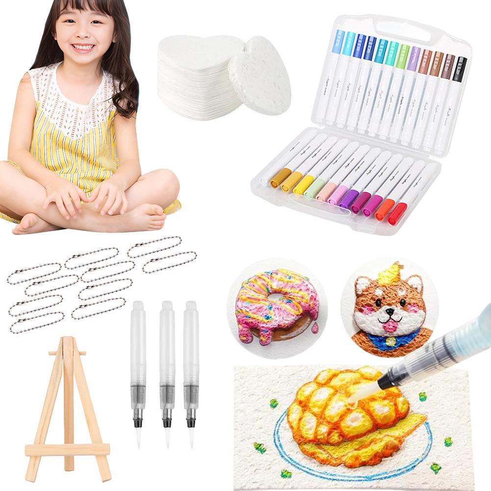 3D Drawing Magic Canvas Sponge with Watercolor Brush Marker Pen Magic Painting Paper Magic Puffy Paint Kit DIY Art Supplies