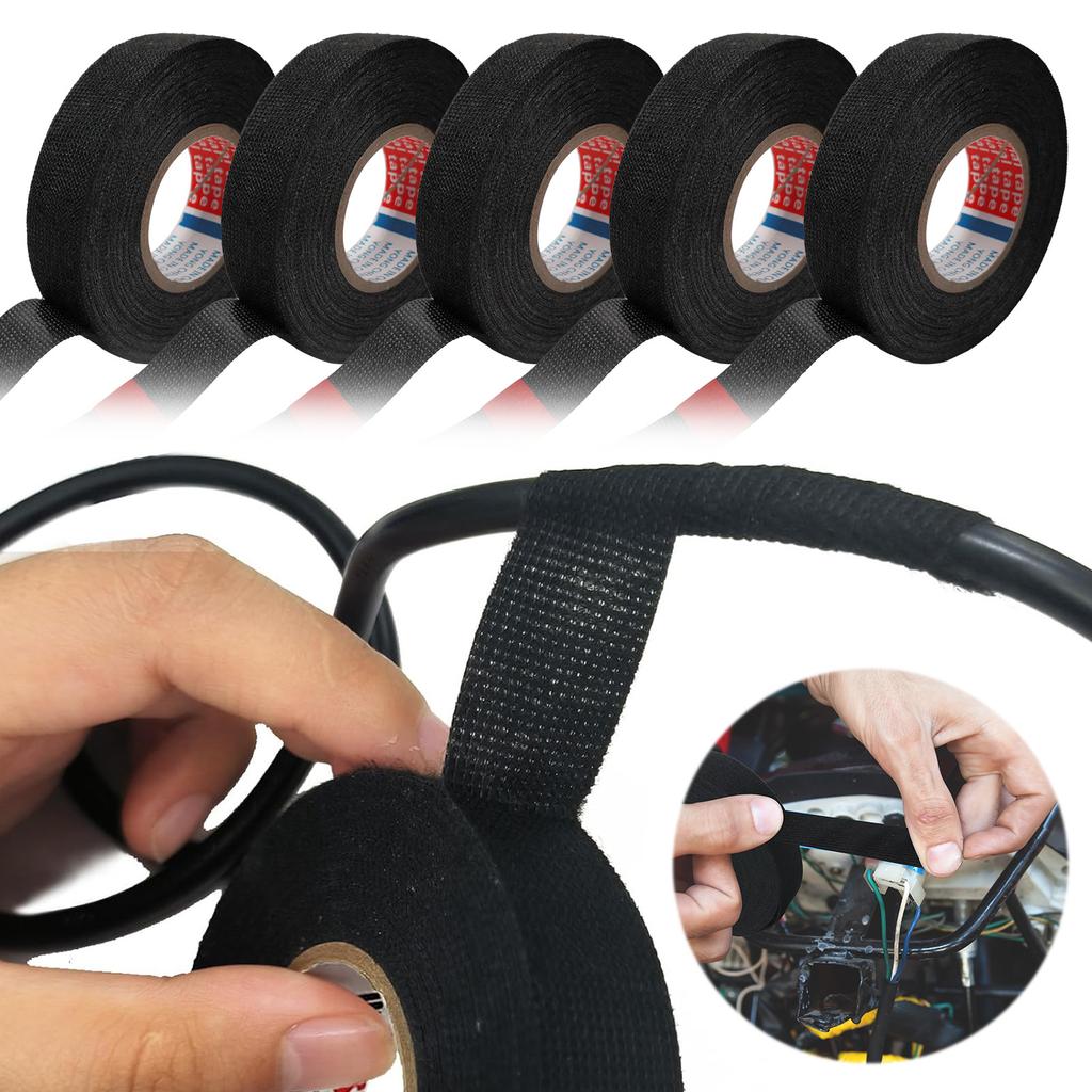 5 Rolls Wiring Harness Cloth Tape Flame Retardant Wire Harness Tape Heat Proof Insulation Electrical Tape for Automotive Engines