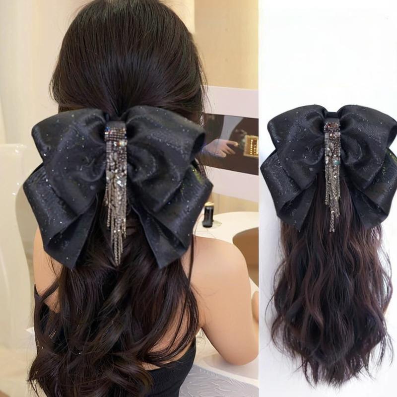 Tassel Bow Wig Ponytail Claw Clip Temperament Slightly Curly Hair Natural Heat-Resistant Hair Accessories