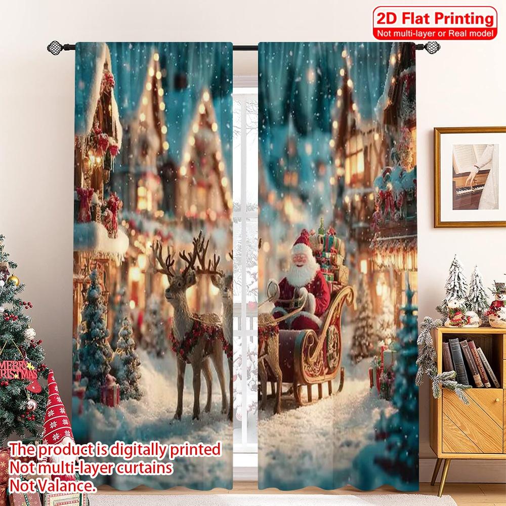 2pcs 2D flat printing Merry Christmas Popular Window Drapes Christmas sleigh Versatile 100% Polyester Without Electricity