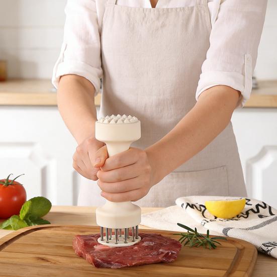 Premium Paslanmaz Çelik İğneler: Gıda sınıfı paslanmaz çelikten üretilen keskin iğneler, et liflerini ve bağ dokularını verimli bir şekilde deler.. Bu tasarım, sığır eti, biftek, hindi ve çeşitli etler için yumuşak bir doku sağlayarak her kullanımda pişirme sonuçlarınızı geliştirir.