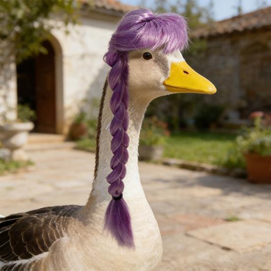 Unique Braided Wig Design: Featuring a charming braided style, this wig adds a playful and whimsical touch to your porch goose. Its distinctive look creates instant laughter and draws attention, making it an ideal accessory for family parties, farm open days, or holiday celebrations.