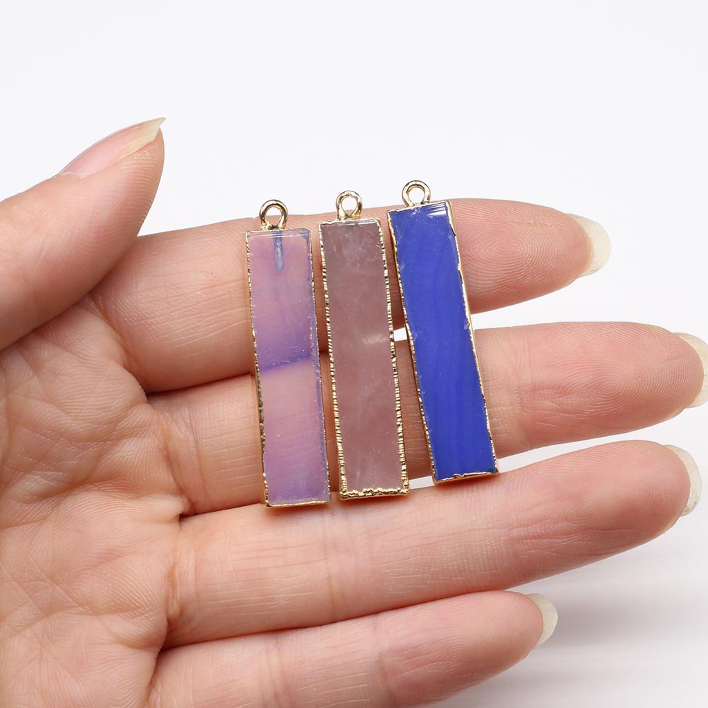 Aura Healing Crystal Pendant, Energy Natural Stone Rose Quartz Clear Quartz Rectangular Charms for Jewelry Making DIY Necklace Accessories 8×40mm