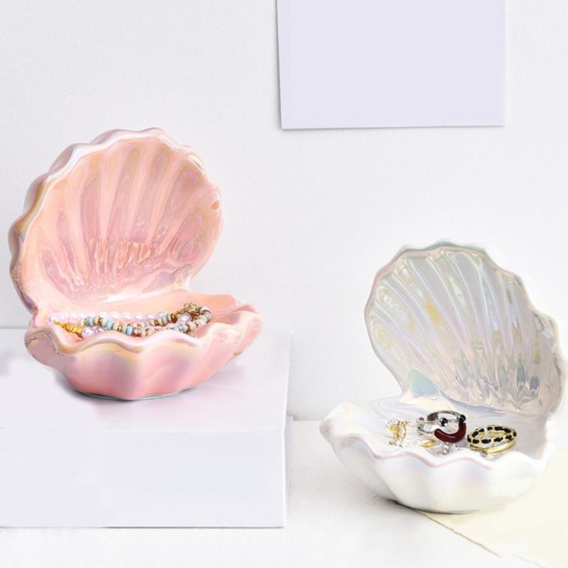 1Pc Handcrafted Ceramic Shell Jewelry Dish