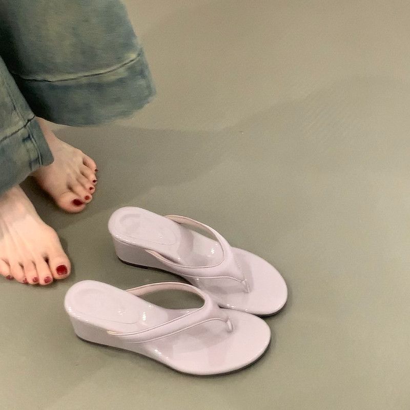 Gentle outer wear heightening flip-flops women's thick-soled feet cold slippers year summer