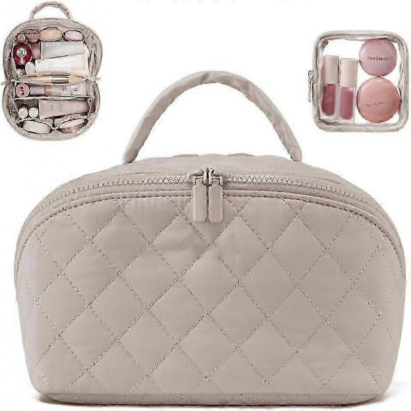 Travel Makeup Bag for Woman, 180 Lay-Flat Design, Large Capacity makeup organizer Pouch Open Flat Toiletry Bag, Triple-Proof Interior, Portable Puffer