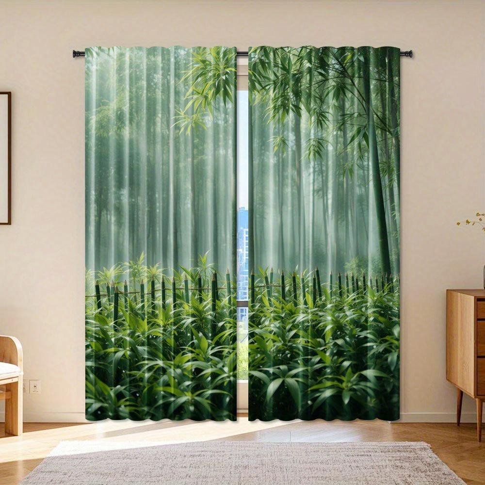 2pcs Ink Bamboo Forest Print Curtains - Rod Pocket Design Light Filtering & Privacy Enhancing Durable Polyester Microfiber for