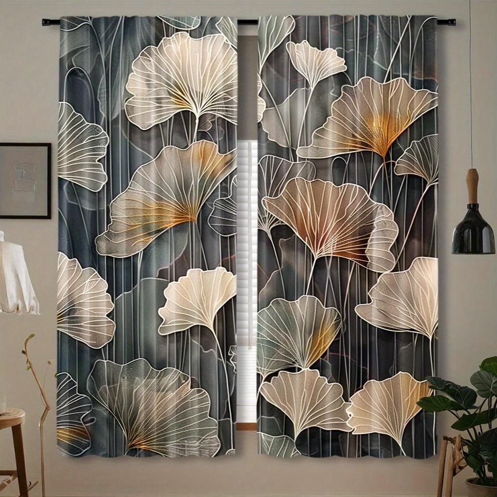 2pcs Stylish Leaf Print Curtains for Living Room Bedroom & Balcony - Semi-Transparent Polyester Rod Pocket Window Treatments wi