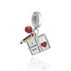 925 Silver Pencil Book Coffee Charms DIY Dangle Beads for Unique Pendant Bracelet Fashion Jewelry