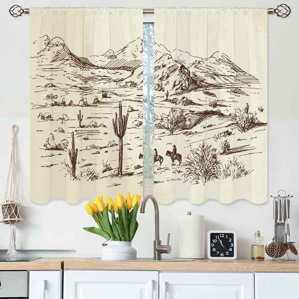 Cowboys Kitchen Curtains American Wild West Desert Riding Horse Cactus Prairie Hill Lanscape Short Tier Curtains for Bathroom Ca
