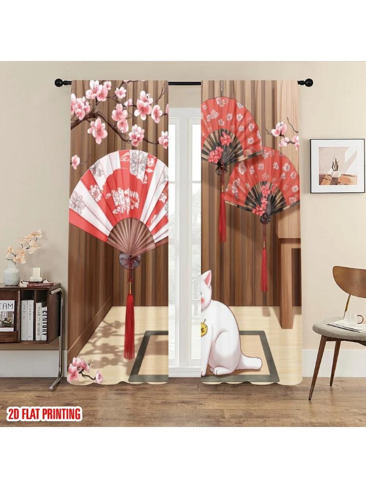 2pc 2D plane printing Window Curtain CherryBlossomFans Versatile Polyester (without rod) Gifts Use for Bedroom Living Room