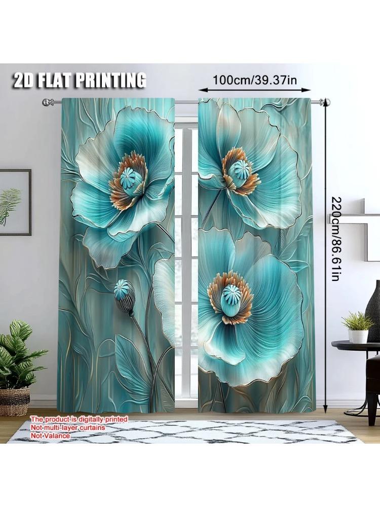 2pcs Curtain Popular print Blue Turquoise Floral Mandala Durable Polyester (without rod) Decorations For Home Ldeal for