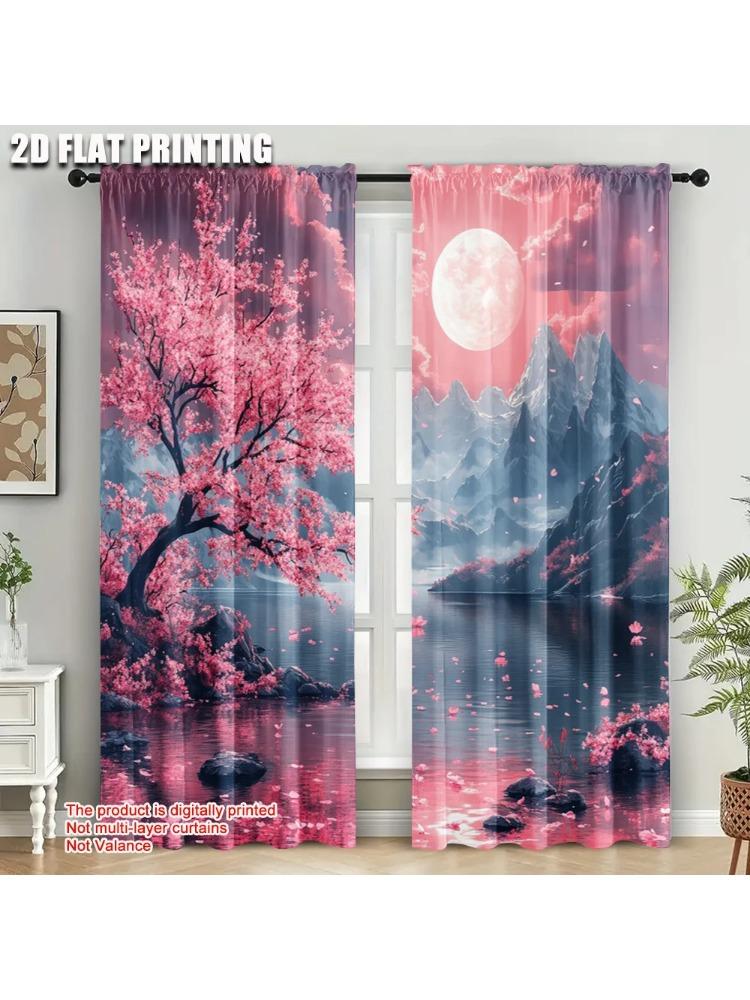 2pcs Curtain Popular print Cherry Blossom Moon Versatile 100% Polyester (without rod) Stuff Clearance Ldeal for Living Room