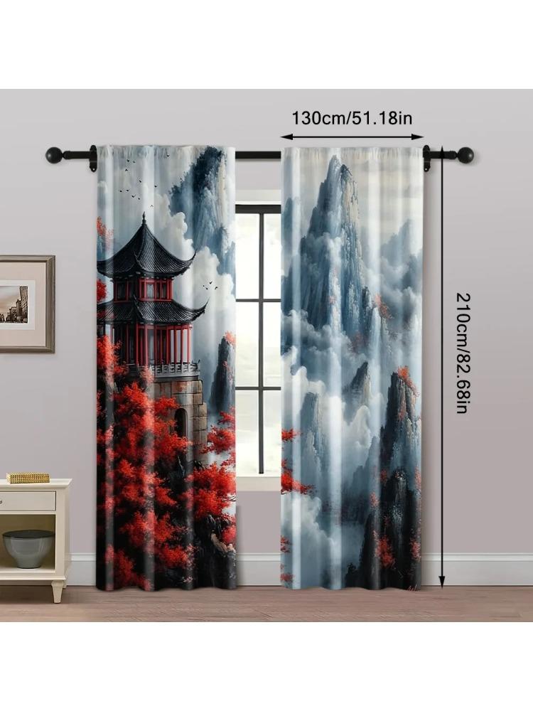 2pcs Window Curtain print Glam Style Japanese Landscape Printed 100% Polyester (without rod) Art Deco Festive for Living