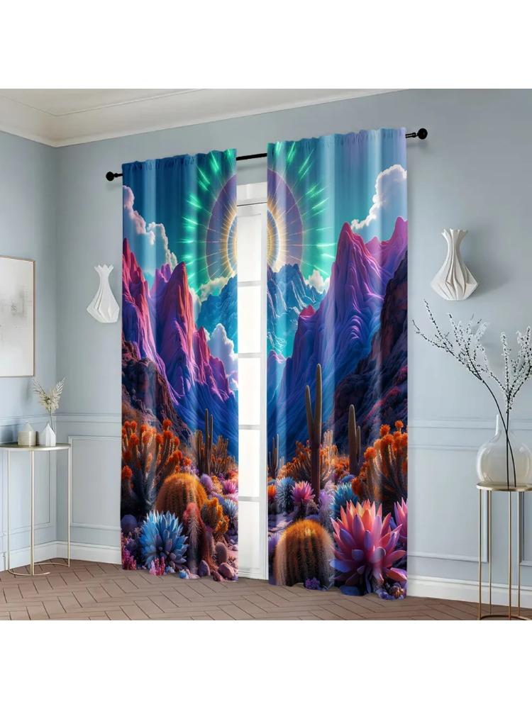 2pcs Window Curtain print Psychedelic Mountain Durable 100% Polyester Fabric (without rod) Holiday Use for Bedroom Living