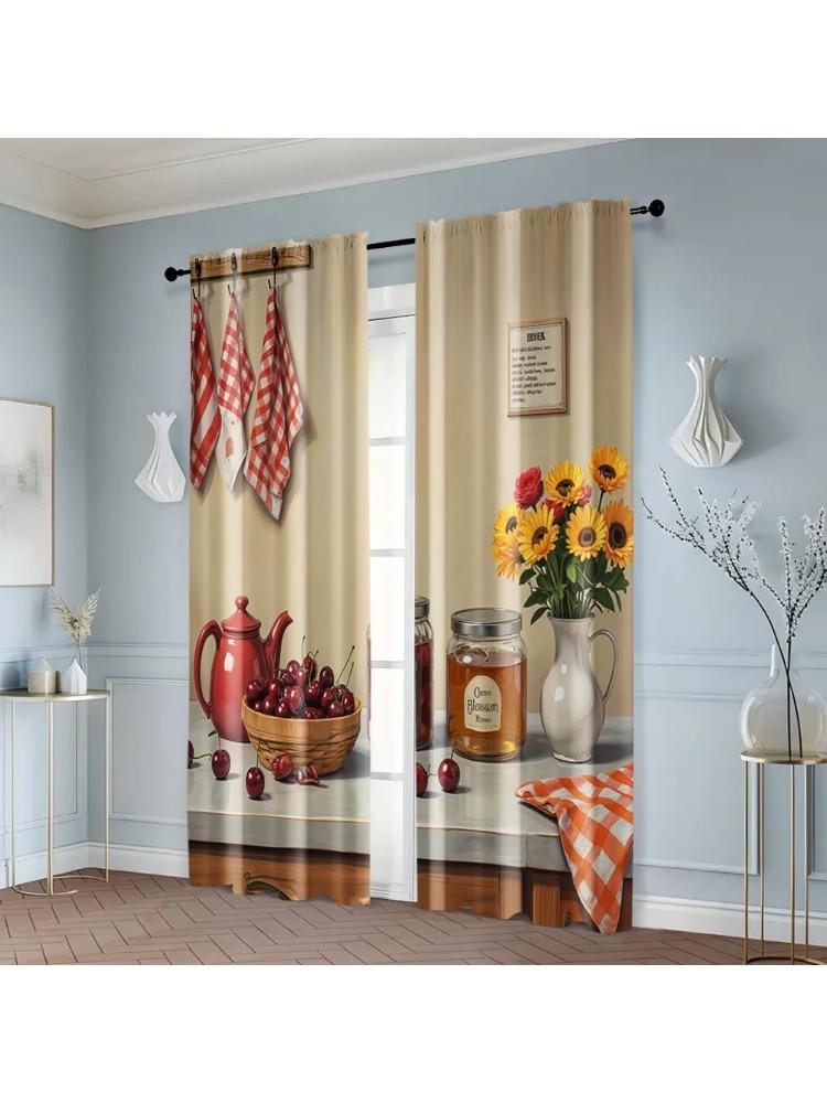 2pcs Contemporary Curtains print Kitchenware Painting Durable 100% Polyester Fabric (without rod) Versatile All Use for