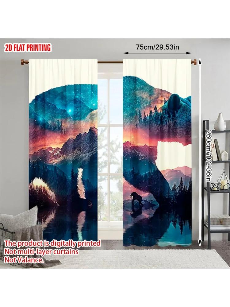 2pcs plane printing Minimalist Curtains black bear Durable 100% Polyester Fabric (without rod) Decorations Inside Perfect for