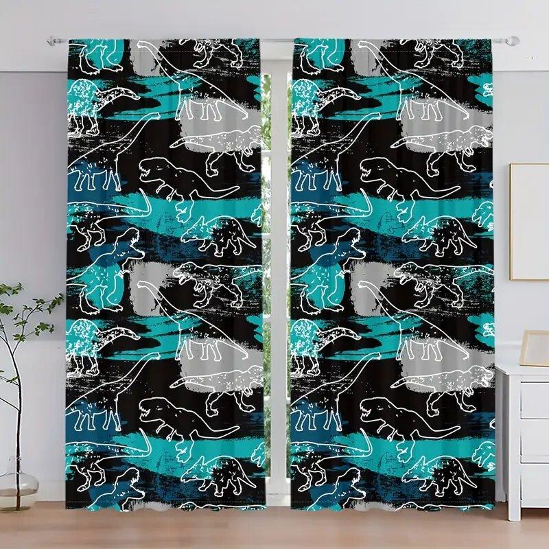 2 pieces - Geometric pattern Jurassic dinosaur printed curtains window decorations home decorations room decorations