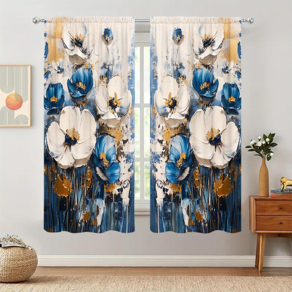 2 Panels Abstract Floral Decorative Oil Curtains Versatile Design Suitable for Any Style Creating a Peaceful Living Space