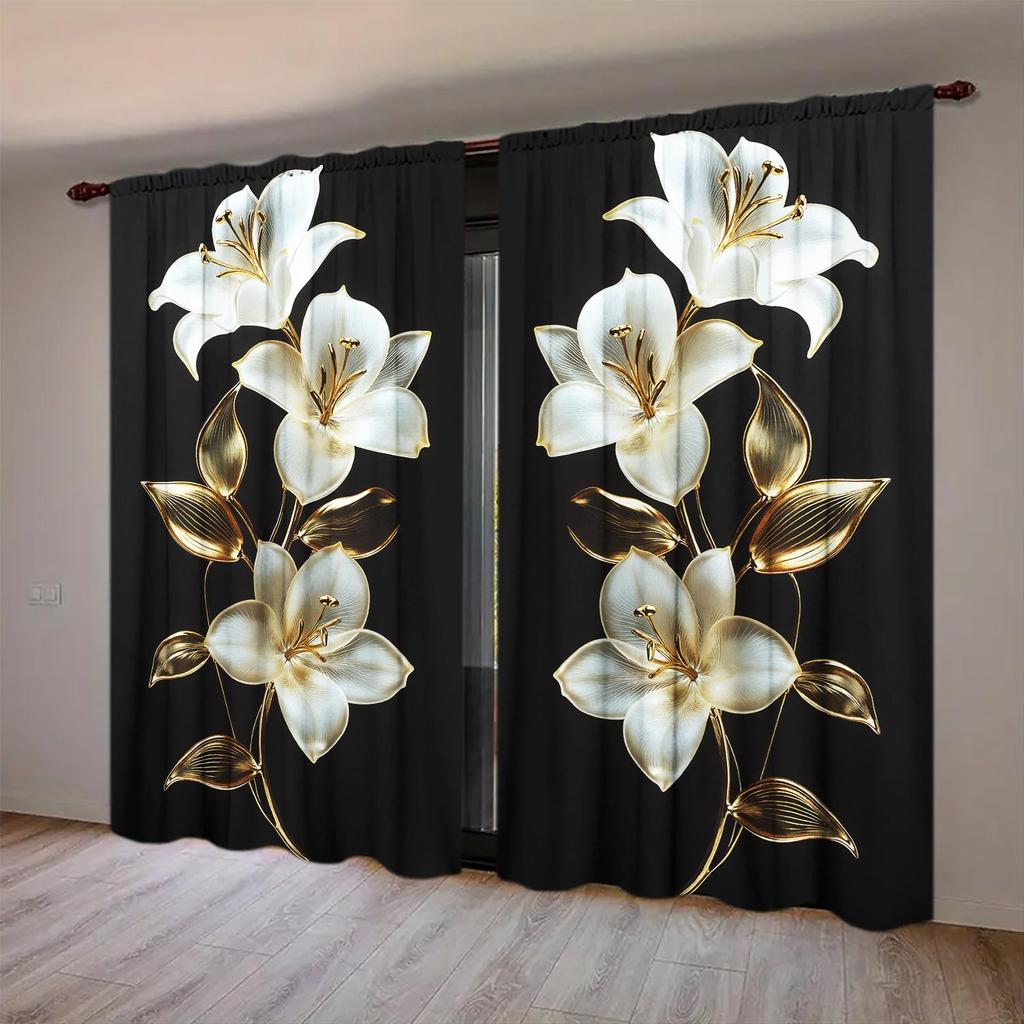 2pcs Luxurious and Gorgeous Lily Jewelry Curtains Versatile Design Suitable for Any Style Creating a Peaceful Living Space
