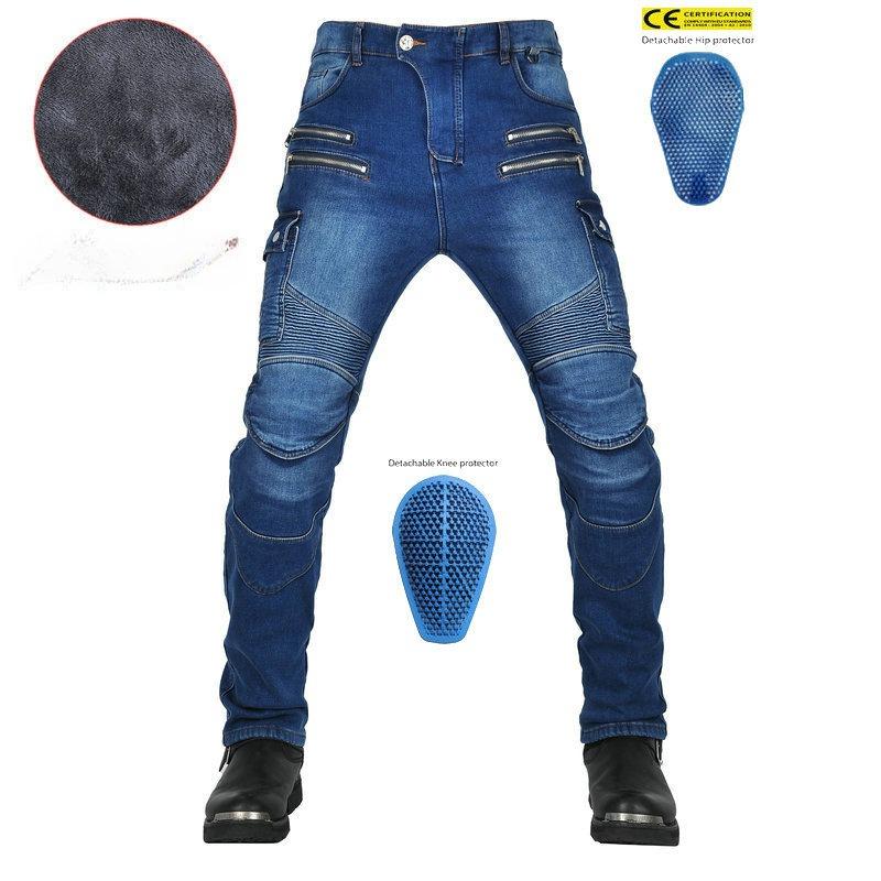 Motorcycle jeans men, winter retro locomotive pants fleece cycling pants, silicone protective gear